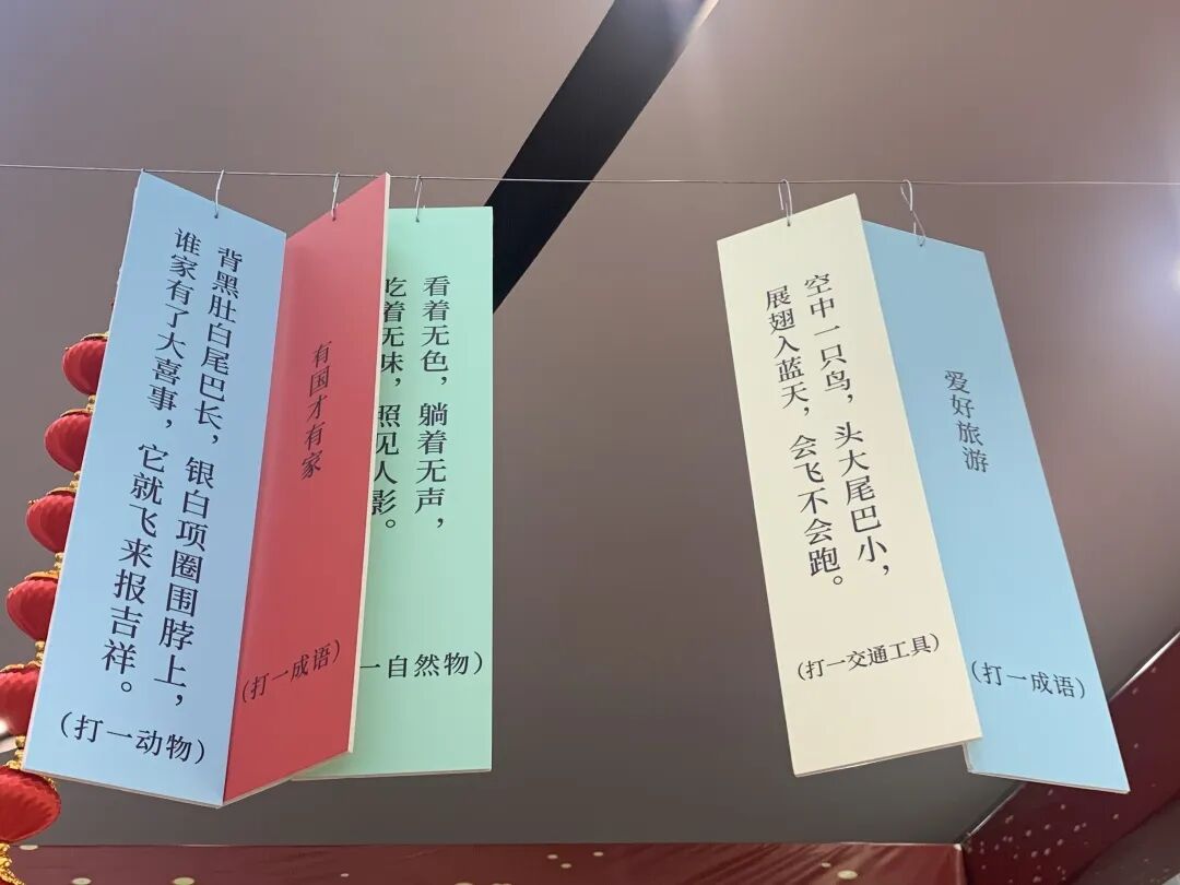 说起咱们的年会,今年可不一般, 听小编好好给大家介绍一下, 除了有节目以外, 今年还有写春联、猜字谜、挂灯笼的环节 瞧,场所里到处都挂着字谜、红灯笼, 一派欢天喜地的节日气息, 过年的氛围感这不一下就出来了嘛~